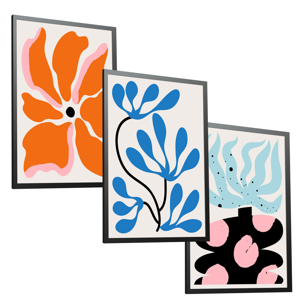 Abstrakcja kwiaty minimalizm no.3 zestaw 3 plakatów